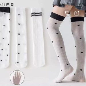 Набор из пары тонких женских гольф до колена белого цвета с небольшим узором. Эластичный материал обеспечивает удобную посадку. Подойдут для осени и весны.