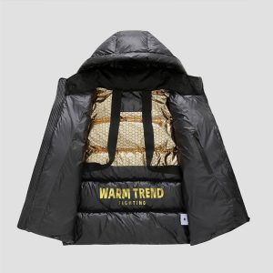 Теплая зимняя куртка-пуховик с модной блестящей отделкой, которая добавляет образу стильности даже в холодное время года. Унисекс дизайн подходит как мужчинам, так и женщинам. Доступна в больших размерах для максимального комфорта. Идеальна для морозной погоды.