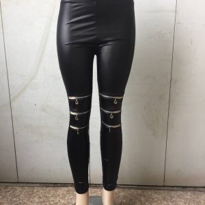 Экспрессивные узкие брюки из искусственной кожи с тремя декоративными молниями на каждой коленке. Создают bold образ и привлекают внимание к деталям. Облегающий крой подчеркивает фигуру, делая их идеальными для вечерних выходов и special occasions.
