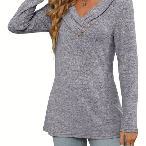 Женская блузка с V-образным вырезом и пуговицами — стильная, с длинным рукавом, удобна для повседневной носки.
