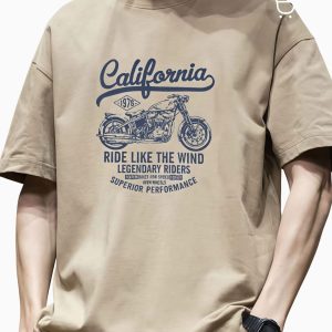 Повседневная мужская футболка хаки оверсайз из 100% хлопка. На груди принт в ретро-стиле "California". Подойдет для летнего отдыха или активного досуга.