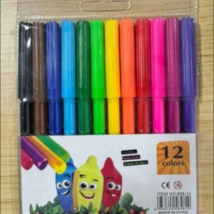 Пластиковая упаковка с 12 разноцветными маркерами. Яркие быстро сохнущие чернила, не размазываются. Подойдут для рисования, письма, выделения.