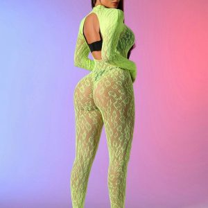 Роскошный комбидресс из кружева и сетки с ажурным узором и длинными рукавами. Создает соблазнительный образ для романтических вечеров и особых случаев. Качественные материалы и изысканный дизайн подчеркивают femininity и элегантность.