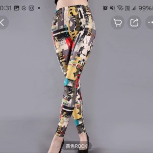 Женские леггинсы с ярким разноцветным принтом. Эластичный материал плотно облегает фигуру, не сковывая движения. Стильный элемент модного образа.