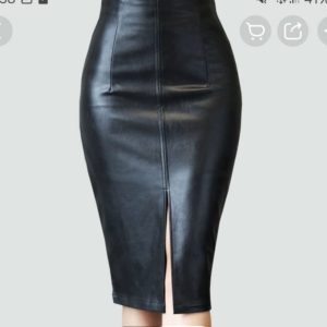 Черная юбка-карандаш из эко-кожи с небольшим разрезом спереди. Высокая посадка, облегающий силуэт. Подчеркнет талию, идеально для вечернего образа.