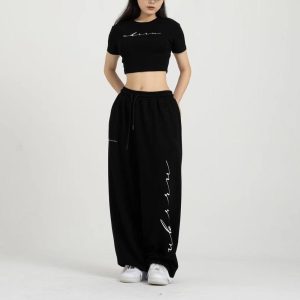 Эти стильные джоггеры сочетают в себе комфорт спортивной одежды и модный дизайн в стиле Y2K. Высокая талия и декоративная шнуровка создают уникальный образ. Идеальны для танцев, уличного стиля и повседневной носки.